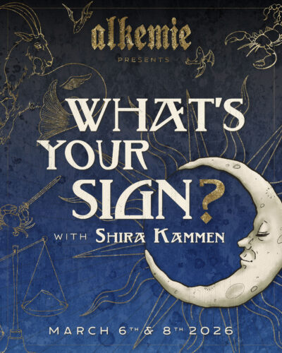 With Tracy Cowart (voice, harps, percussion), Shira Kammen (vielle), Ben Matus (voice, recorders, medieval bagpipes, percussion), David McCormick (vielle, rebec), Sian Ricketts (voice, recorders, douçaines), Niccolo Seligmann (vielles), and Ellie Sutherland (voice, percussion). For tickets and more information, please visit alkemie.org/whats-your-sign.