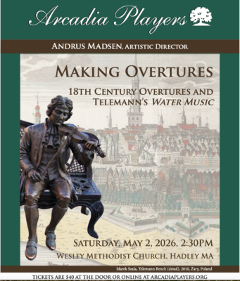 Saturday, May 2, 2026 at 2:30pm Wesley United Methodist Church, Hadley, MA In 1723, when Hamburg, Germany’s officials wanted music for a celebration of the city’s maritime heritage, they turned to their famous local composer, Georg Philipp Telemann. The Overture he gave them captured the motion and character of Hamburg’s main waterway, the River Elbe, […]
