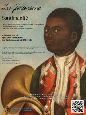 December 13, 2025 @ 7:00 pm – 8:15 pm – Kyran Assing – violoncelle, violoncello piccolo, viole de gambe Susie Napper – viole de gambe Abraham David Ross – clavecin | harpsichord Un tissage ‘impitoyable’ de pièces pour violoncelle, violoncelle piccolo et viole de gambe – pimenté d’une touche de créole français trinidadien. A “merciless” weaving of solo works for violoncello, violoncello piccolo, and […]